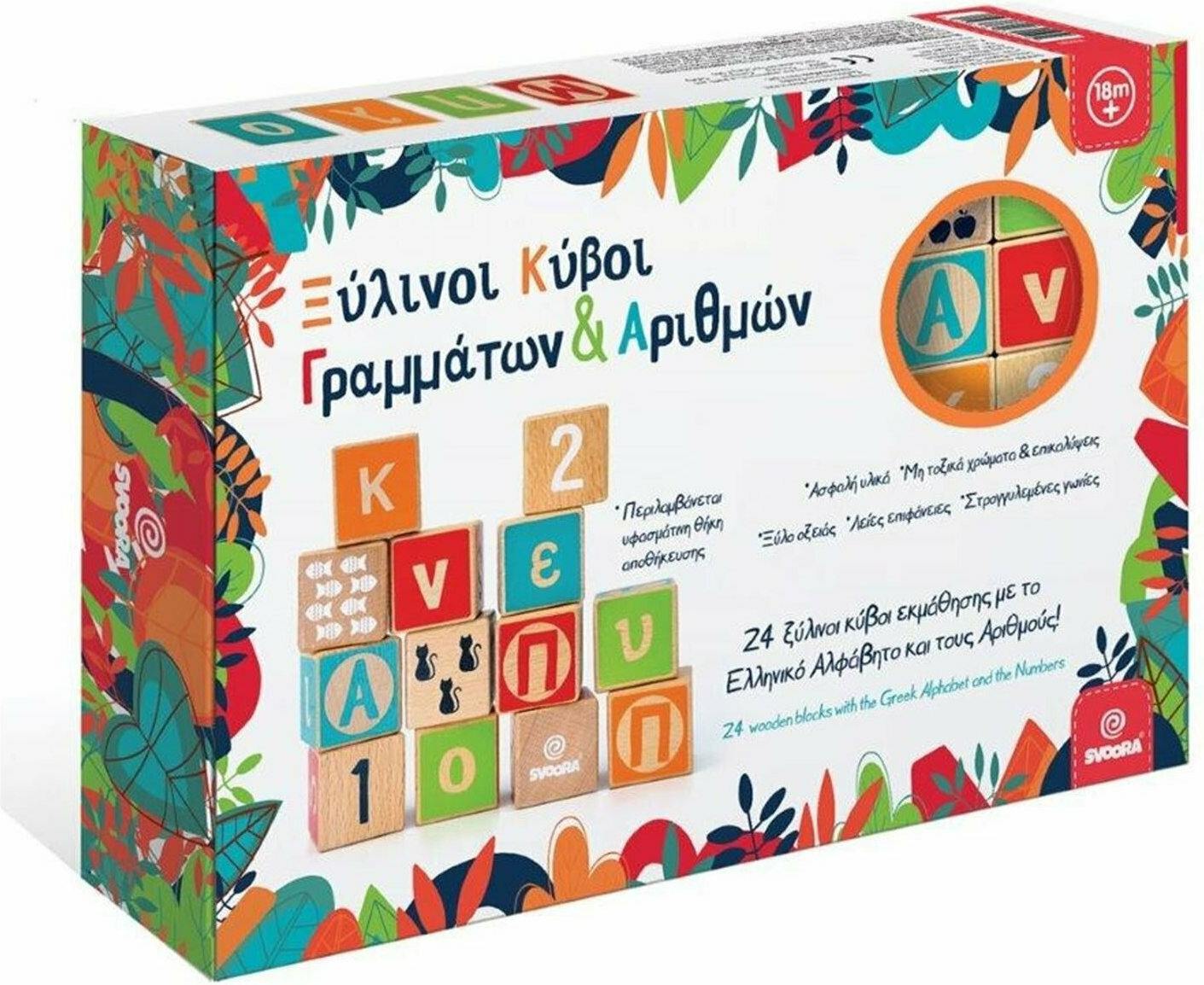 Svoora Εκπαιδευτικά Τουβλάκια από Ξύλο Γράμματα, Αριθμοί, Σχήματα για 1.5+ Ετών 24τμχ