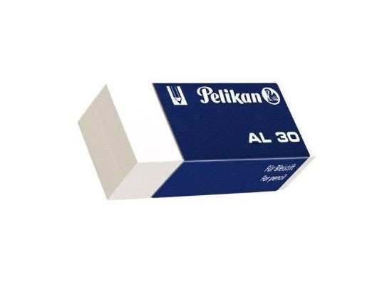 Γόμα λευκή pelikan al-30 μικρή για μολύβι. Μαλακή γόμα για εύκολο σβήσιμο χωρίς ιδιαίτερη προσπάθεια. Δεν αφήνει υπολείμματα στο τέλος κρατώντας την επιφάνεια εργασίας σας καθαρή. Αντιθέτως το υπόλειμμα παραμένει κολλημένο πάνω στη γόμα και το πετάτε μόνοι σας όταν ολοκληρώσετε το σβήσιμο.