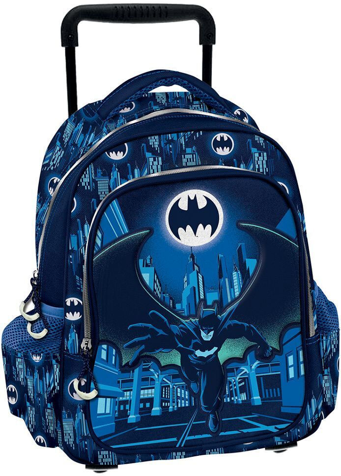 Σχολική τσάντα η οποία μπορεί να χρησιμοποιηθεί ως τρόλεϊ, κατάλληλη για παιδιά νηπιαγωγείου της εταιρίας Graffiti με θέμα Batman σε μπλε χρώμα.