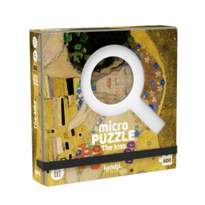 Διαθέτοντας εκπληκτικά σκίτσα, τα micropuzzle με 600 κομμάτια της Londji αποτελούν μια αληθινή πρόκληση ακόμα και για τον πιο δυνατό λύτη παζλ! την πανέμορφη εικόνα του Φιλιού, όπως τη ζωγράφισε ο Γκούσταφ Κλίμτ, κατά την επονομαζόμενη χρυσή του περίοδο, το 1907. Διαστάσεις παζλ: 20 x 30 εκ. Διαστάσεις συσκευασίας: 14.5 x 14.5 x 3.5 εκ.