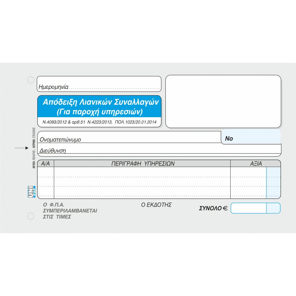 ΑΠΟΔΕΙΞΗ ΛΙΑΝΙΚΩΝ ΣΥΝΑΛΛΑΓΩΝ ΓΙΑ ΠΑΡΟΧΗ ΥΠΗΡΕΣΙΩΝ ΜΕ Φ.Π.Α.