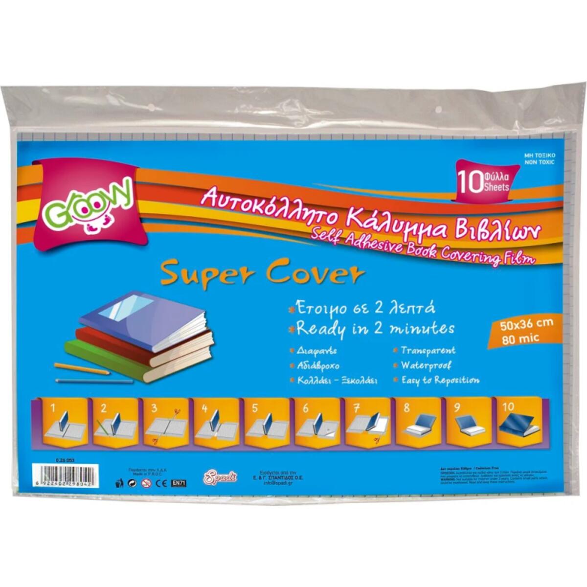 Κάλυμμα βιβλίου αυτοκόλλητο διαφανές GROOVY 50x36cm 80mic (πακέτο 10 φύλλων)